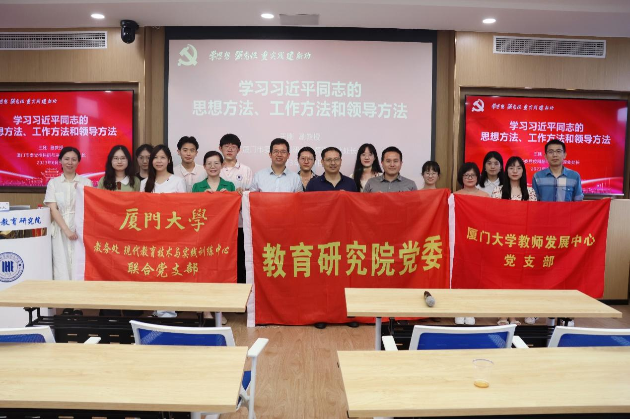 2023年6月9日,教育研究院在黄宜弘楼502报告厅开展理论学习中心组(扩大)第四次专题学习暨第四次集体学习交流活动。中共厦门市委党校科研与决策咨询处处长王刚副教授作题为《学习习近平同志的思想方法、工作方法和领导方法——以福建工作期间为例》的专题报告。教务处现教中心联合党支部、教师发展中心党支部应邀参加专题学习。活动由教育研究院党委委员乔连全副教授主持。