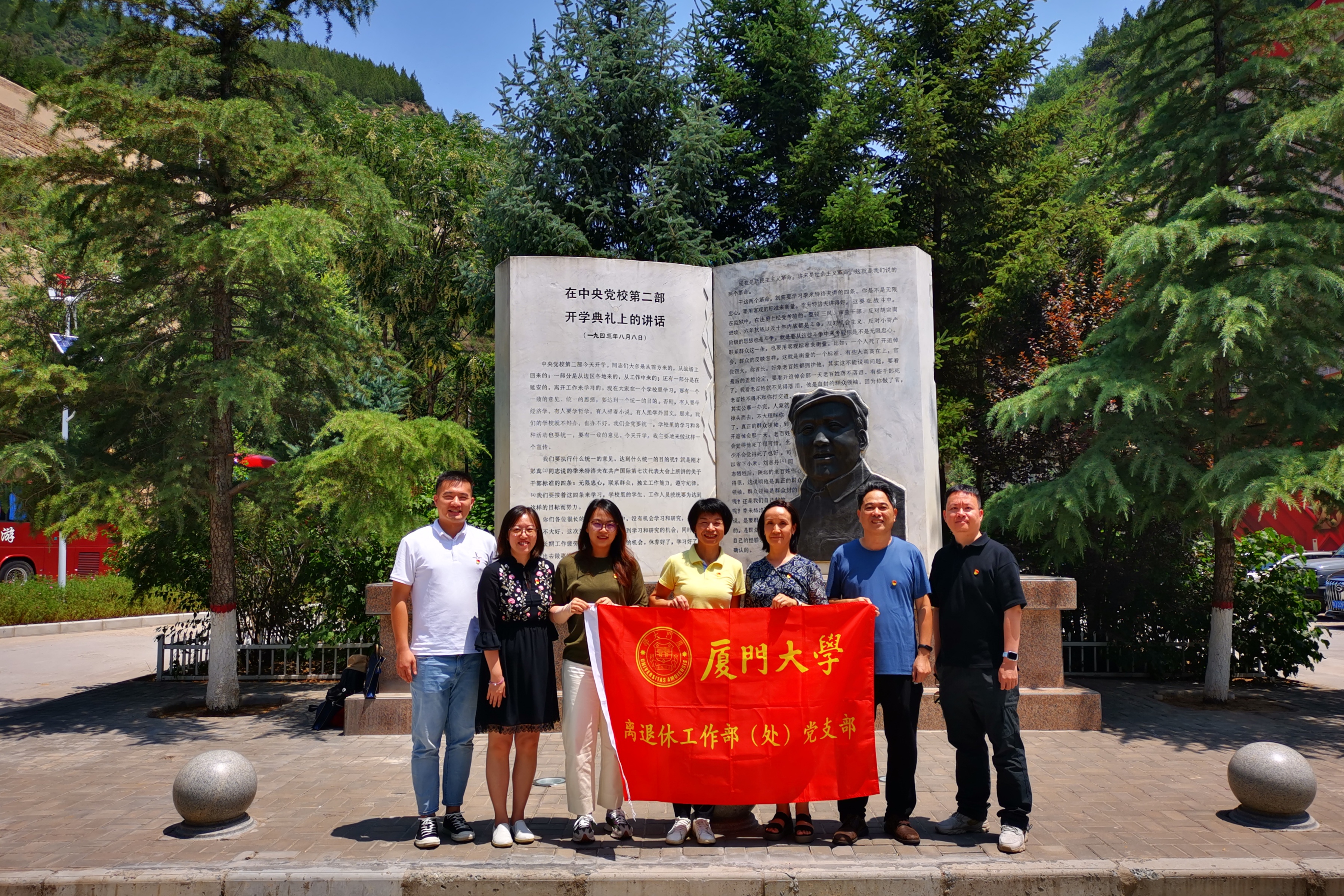为深入开展学习贯彻习近平新时代中国特色社会主义思想主题教育,学习宣传贯彻党的二十大精神,进一步引导全体党员传承红色基因、汲取精神力量,6月25日-29日,离退休工作部(处)党支部前往陕西延安开展以“追寻红色足迹 弘扬延安精神”为主题的“固定党日+”活动,组织全体在职党员参观延安革命纪念馆、南泥湾镇、梁家河村及王家坪、杨家岭、枣园等革命旧址,聆听现场教学讲解,观看《再回延安》红色革命情景剧,追寻革命先辈的红色足迹、汲取踔厉奋发的精神力量。