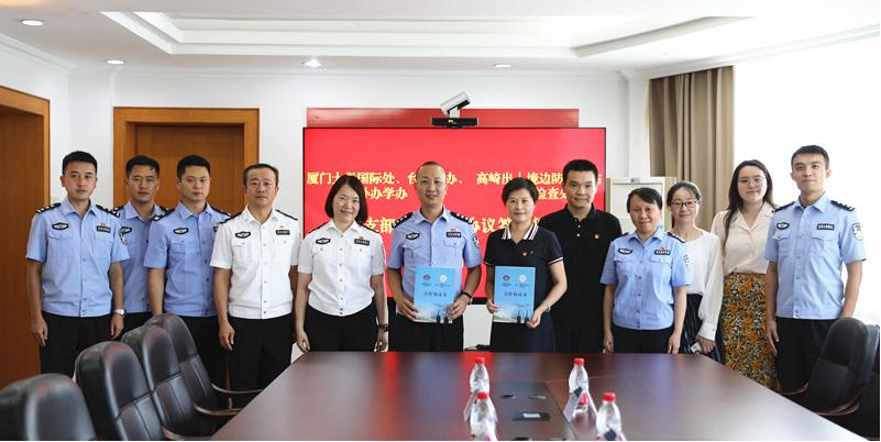陈锦来处长对余宏波一行的到访表示欢迎,简要介绍了高崎站下辖口岸区域、边检工作职能、对台特色品牌和边检处党支部建设等情况。余宏波感谢高崎站在厦门大学推进建设“两岸高等教育融合发展实践基地”中提供的工作支持,特别是双方发挥各自优势,推动在五通客运码头成功挂牌设立第一个“共促两岸融合发展实践点”。双方表示,要以此次党支部结对共建为契机,深化“移民管理+重点高校”联动合作机制,通过全面开展组织联建、活动联办、调研联动、人才联培、品牌联创,积极拓展业务互通、资源共享,以学促干,提质增效,持续提升服务师生的水平,持续推动高校理论创新成果与边检执法实践力量的有机结合,不断拓展共建共促的广度和深度。