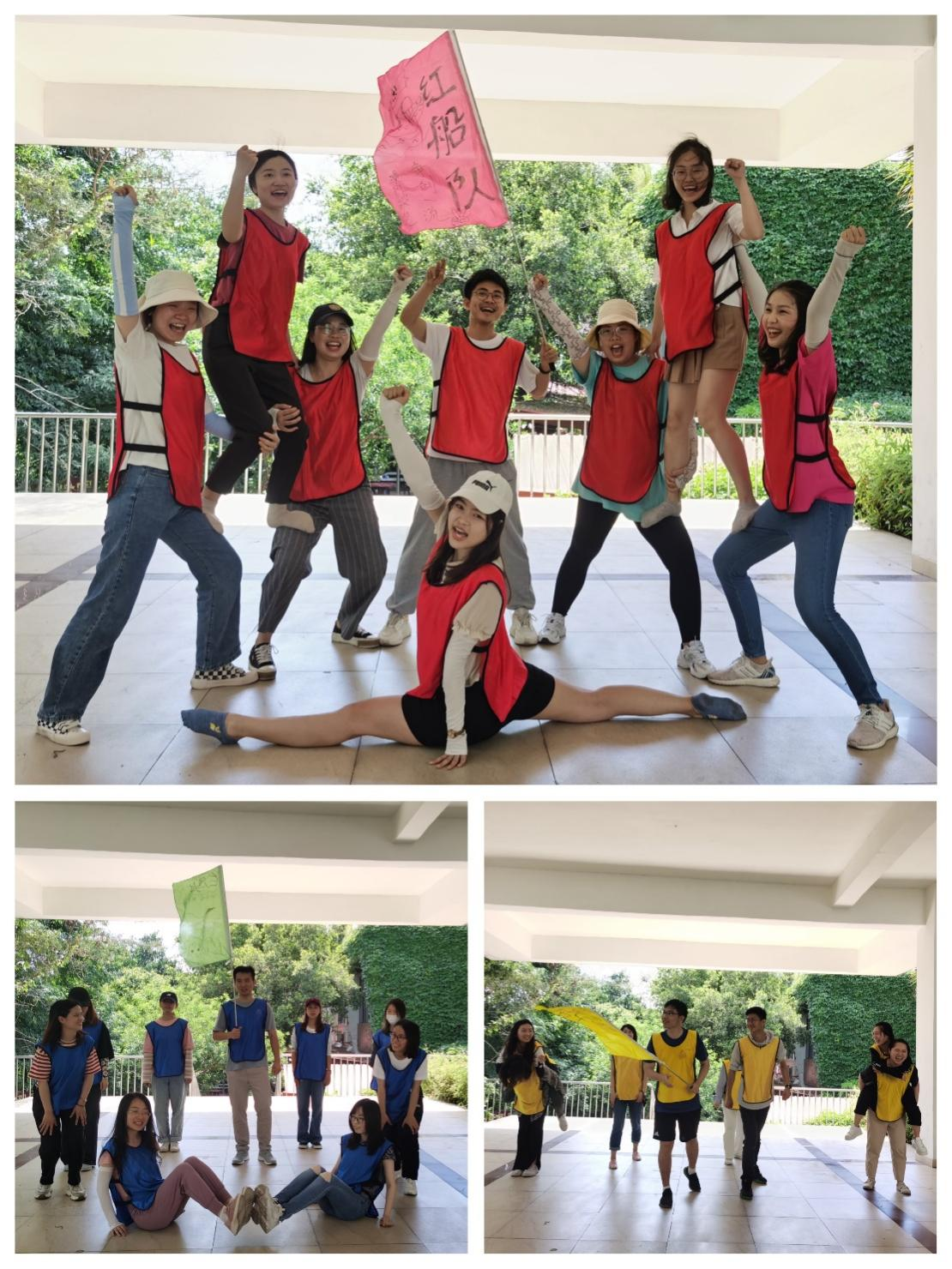 随后,三支队伍进行了创意独特、别具匠心的团队文化建设。他们结合建党百年、建校百年、青年特色分别将团队命名为“红船队”“白鹭战队”和“奔跑吧·青队”,并通过展示口号、队旗以及队形等形式,进一步增进了团队凝聚力。