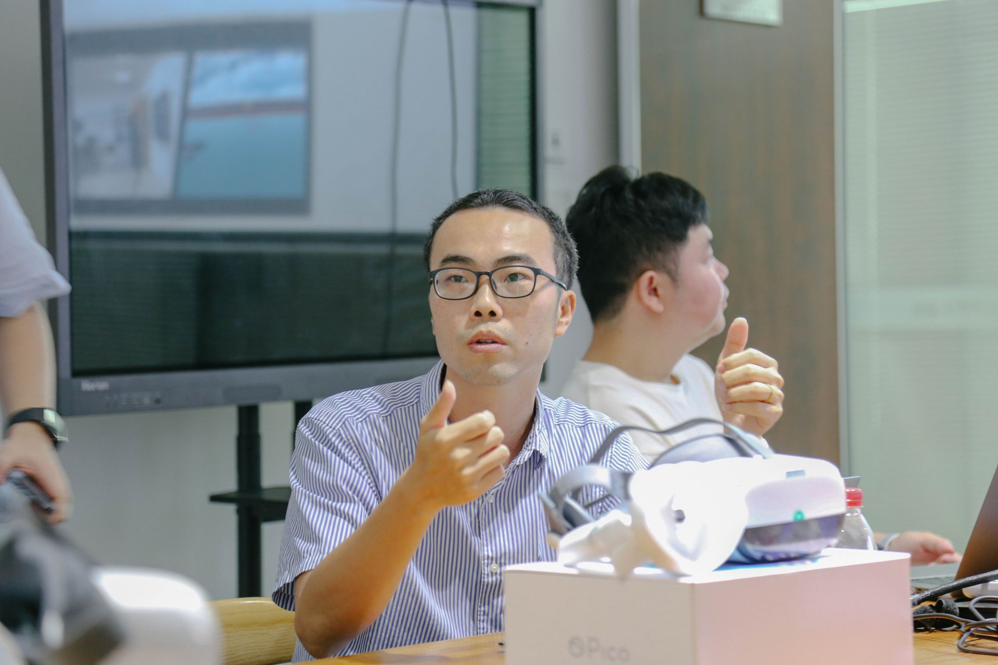 参访的第二站大家来到了蚂蚁特工(厦门)科技有限公司,作为AR领域资深行业专家,公司的创始人兼CEO林志坚向大家详细介绍了公司概况、发展历程以及合作产品案例,并带大家身临其境地感受AR、VR技术对我们社交、娱乐和生活方式带来的改变和影响。